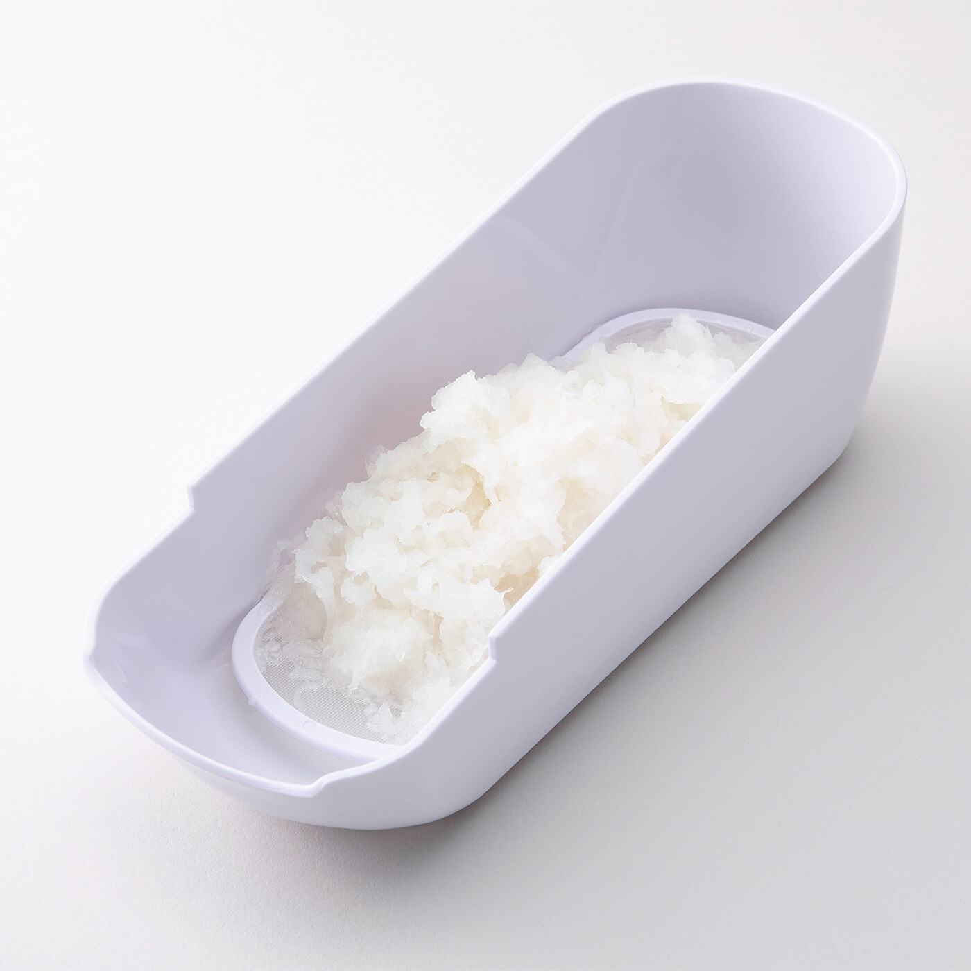 おろし器・受け皿・目皿枠:ABS樹脂(耐熱温度100℃) 目皿網:ナイロン(耐熱温度140℃) すべり止め足:ポリウレタン(耐熱温度120℃) ※耐熱温度内でも、急激な温度変化は加えないでください。また食洗機内のヒーター部分付近には置かないでください。歪みの原因となります。