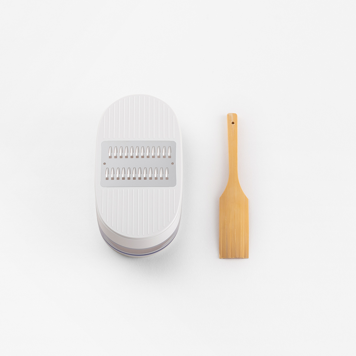 刃部:18-8ステンレススチール 本体:ABS樹脂(耐熱温度90℃) フタ:AS樹脂(耐熱温度90℃) すべり止め:熱可塑性エラストマー(耐熱温度90℃) 刷毛:天然竹