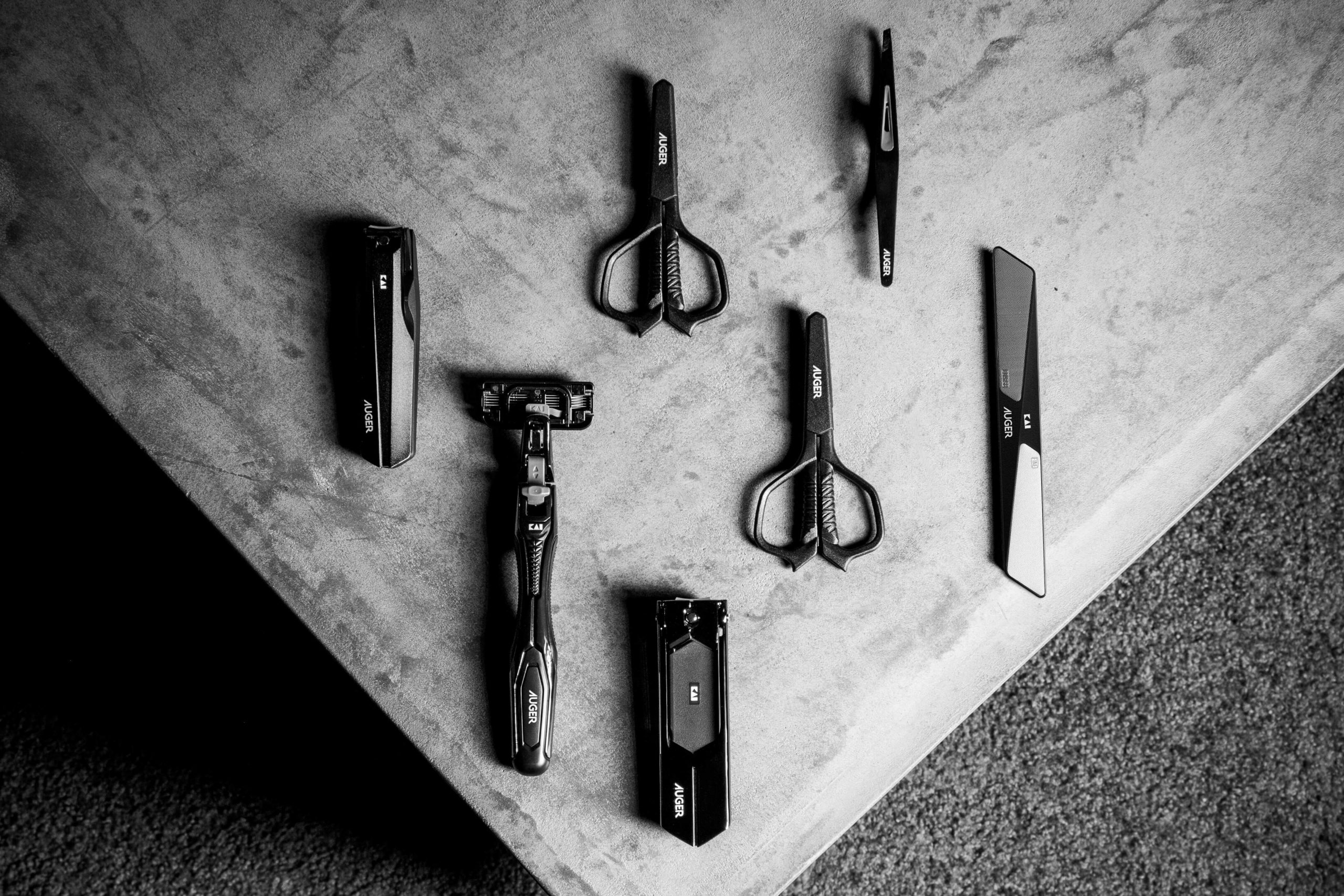 刃物のスペシャリストである貝印が、「身だしなみを整える時間」をより豊かで、より心地良いものへと導くべく誕生したのが、「AUGER」です。乱雑になりがちな洗面台をすっきりと統一するスタイリッシュなブラックのデザインを採用したグルーミングアイテムは、カミソリ、ツメキリ、ハサミなど幅広いツールを取り扱う貝印だからこそ実現できた、ハイパフォーマンスでハイクオリティなラインナップです。煩わしいと感じられがちな「身だしなみを整える時間」が、特別な時間へと変わり、心身をリセットすることで新しい一歩を踏み出すきっかけにしてほしい――「AUGER」を使うことで、そんな機能や価格を超えた価値を提供したいと考えます。