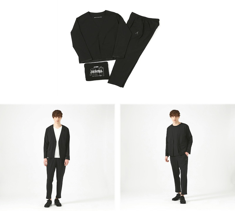 また、帝人フロンティア(株)が開発を手掛ける高機能素材「MINOTECH®」*を採用する、ワンマイルウェアシリーズ「纏叉」からは、「パッカブルTシャツ」と「ワンマイルウェア セットアップ カーディガン&イージータックパンツ」が登場。「MINOTECH®」*は、雨などを弾く「撥水性」と群れを放出する「透湿機能」を備えているため、グルーミング時など、水濡れが心配なシチュエーションでも快適に着用いただけるのが特徴です。さらに、「AUGER」と「5351POUR LES HOMMES」共通のブランドカラーである、ブラックをベースとしたシックなデザインとなっており、ルームウェアとしてはもちろん外出時にも着用いただけます。