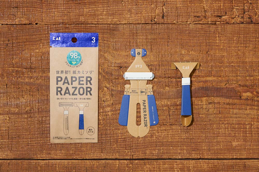「紙カミソリ®」は使い捨てカミソリ国内シェアNo.1※1の貝印が、サステナビリティやSDGs(持続可能な開発目標)達成に向けた社会機運の高まりを受け、その一助となるべく開発。グローバル刃物メーカーとして長年培った知見を最大限に活用し、カミソリのハンドルに紙、刃体(ヘッド全体含む)に金属を使用した脱プラスチック※2なアイテムです。2021年4月22日(木)に公式オンラインストア「KAIストア」にてテスト発売し、2022年3月全国発売が決定しました。