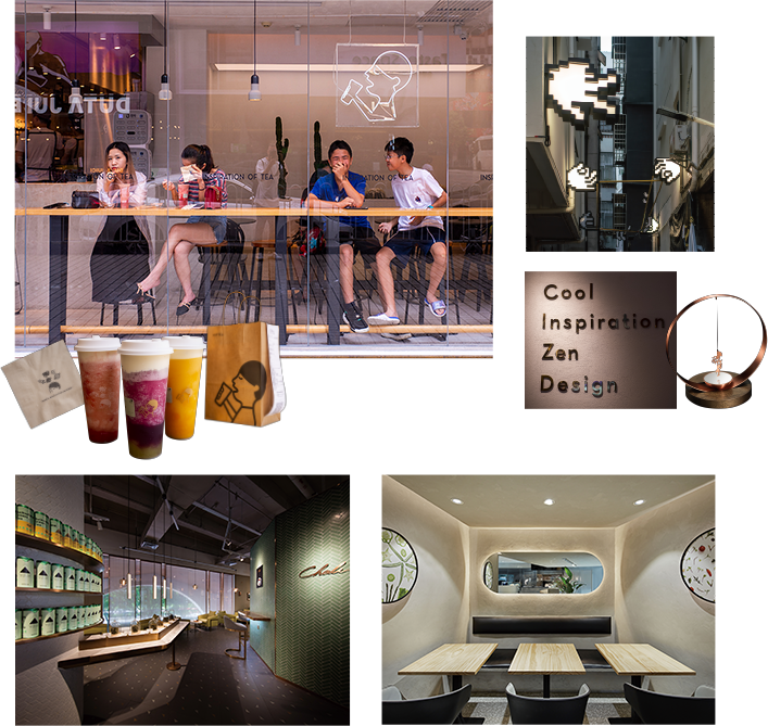 「総合的なブランディングを手がけられる会社は中国内にもまだ少なく、その分野で他社と一線を画しているという自負があります」。その中で、一躍名をあげた案件が〈HEYTEA〉だ。中国国内で30店舗以上を展開する、チーズティが有名なカフェである。日本の禅の精神から発想した、白を基調としたクリーンなデザインだ。「グローバルの潮流や作法を取り入れながら地域性を表現する手段はあるはずです。私自身としても、それを常に模索しています」。