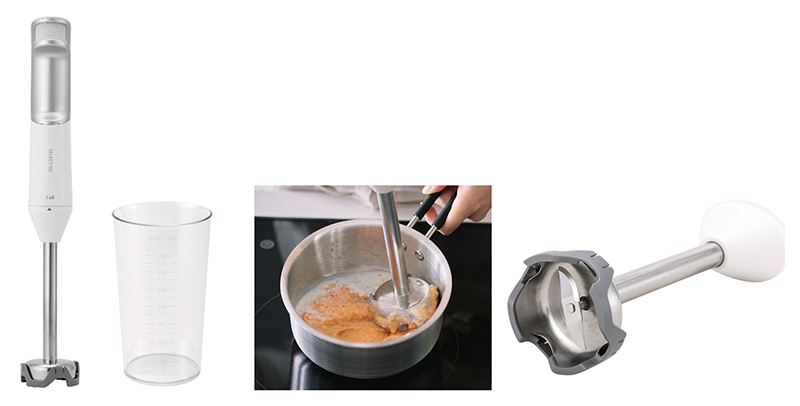 - 複数のアタッチメントを使い分ける煩わしさがなく、ひとつの刃で様々な調理に対応可能。