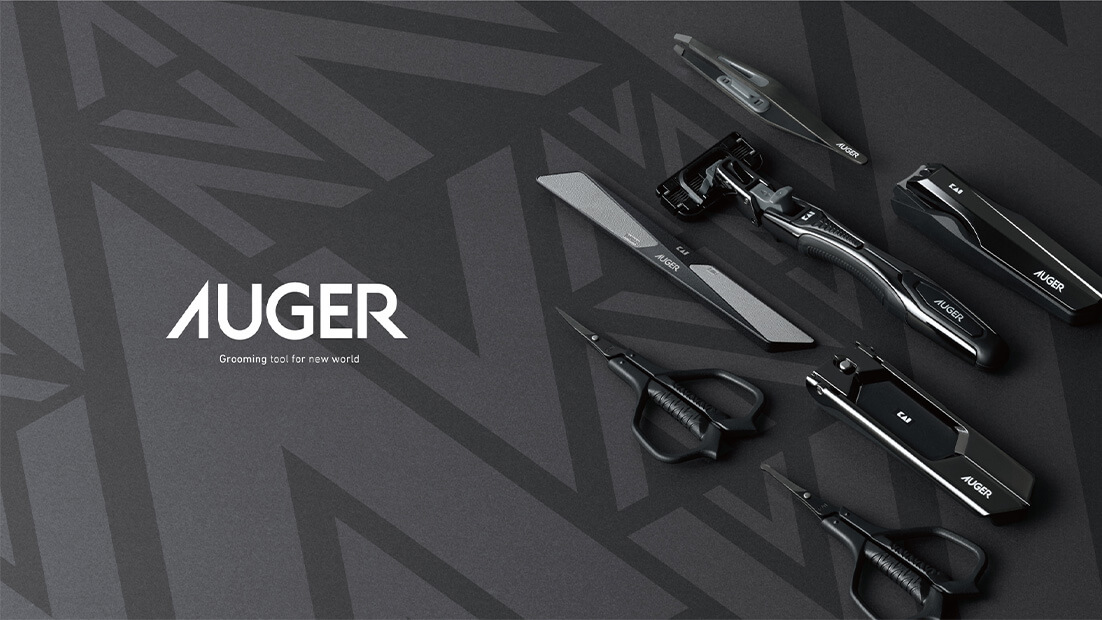 刃物のスペシャリストである貝印が、「身だしなみを整える時間」をより豊かで、より心地良いものへと導くべく誕生したのが、「AUGER」です。乱雑になりがちな洗面台をすっきりと統一するスタイリッシュなブラックのデザインを採用したグルーミングアイテムは、カミソリ、ツメキリ、ハサミなど幅広いツールを取り扱う貝印だからこそ実現できた、ハイパフォーマンスでハイクオリティなラインナップです。煩わしいと感じられがちな「身だしなみを整える時間」が、特別な時間へと変わり、心身をリセットすることで新しい一歩を踏み出すきっかけにしてほしい――「AUGER」を使うことで、そんな機能や価格を超えた価値を提供したいと考えます。